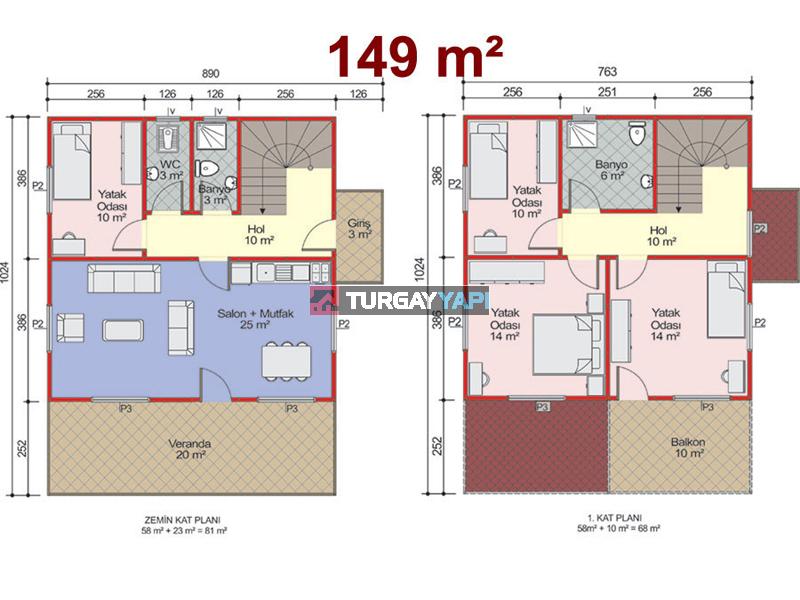 Çift Katlı Prefabrik Ev 149m²